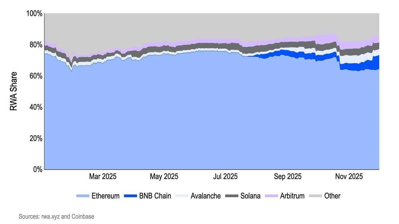 Ethereum still acts as the settlement hub for institutional RWAs, but the footprint is spreading.